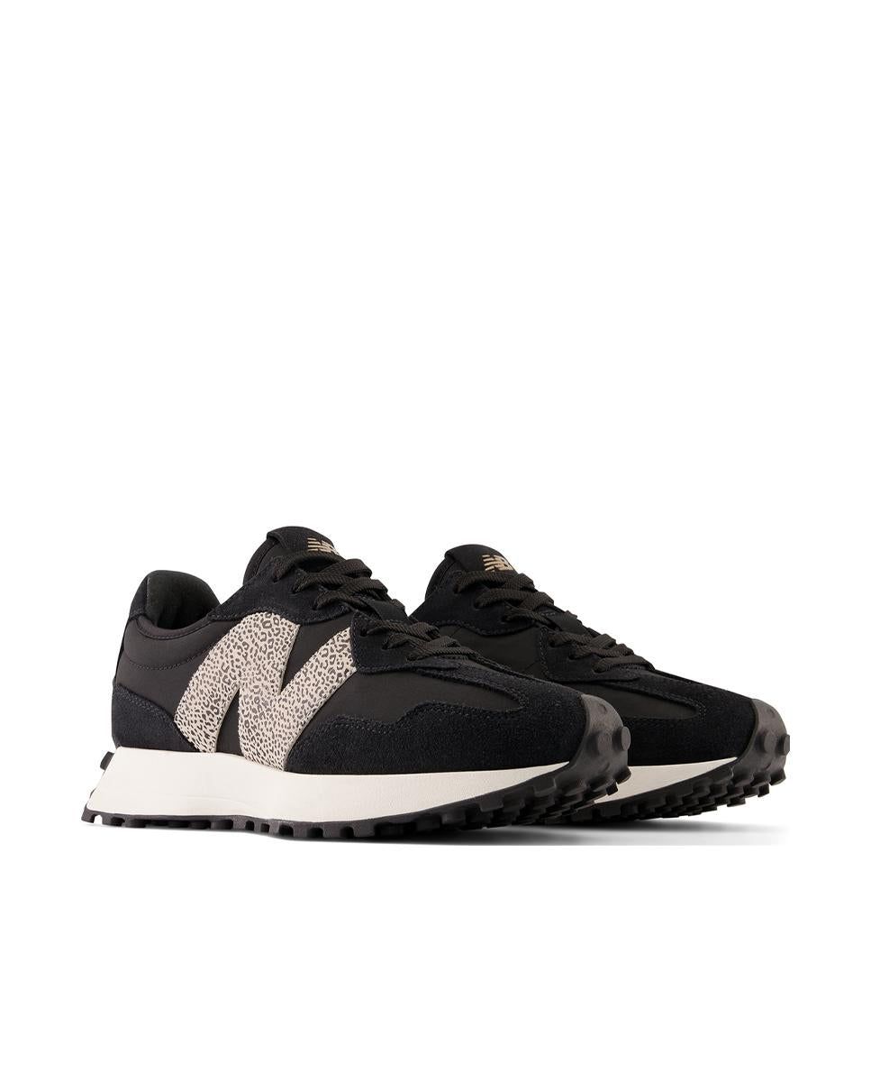 Las New Balance WS327PH destacan por su diseño audaz en negro con estampado leopardo, inspirado en el running vintage. Su capellada de malla textil combinada con material sintético ofrece ligereza y comodidad, mientras que la suela de goma proporciona estabilidad y agarre.